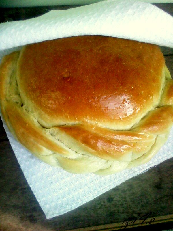 Голямата топка сложих паричката и направих на хубаво гладко топче , и сложих в средата на тавата ,а от другата направих три фитила и сплетох на плитка.(Рецептата с малки изменения по идея на невероятната Ева Тонева.